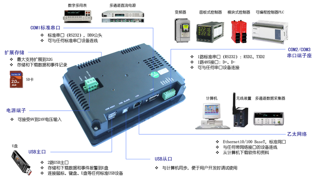 (3) 借助自帶的多種通訊接口可與所有廠家的大型高精度數(shù)字繁用表、數(shù)據(jù)采集器及其它測(cè)量設(shè)備和儀器輕松相連,充分發(fā)揮測(cè)量設(shè)備和儀器的精度和功能,并可通過串口、以太網(wǎng)、USB下載運(yùn)行和存儲(chǔ)數(shù)據(jù)。